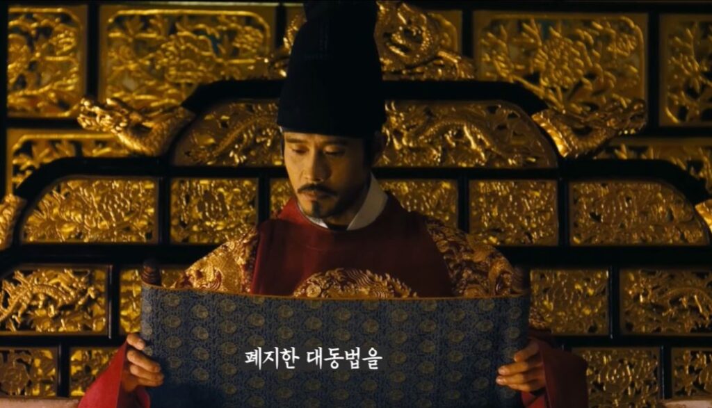 영화를 보면 하선은 완벽한 전략가도, 정치적 천재도 아니다. 오히려 그는 실수하고, 감정적으로 행동하며, 때로는 두려움에 흔들린다. 그러나 바로 그 인간적인 모습이 백성들에게는 진짜 위로가 된다. 이로써 “정치는 냉정해야 하는가? 아니면 따뜻해야 하는가?”라는 질문을 떠올리게 만든다. 폐지한 대동법에 대한 이야기와 사월이의 부모님을 만나게 해준다는 이야기 이런 것을 보면 얼마나 하선이 인간적인 모습인지를 알 수 있는 장면이다. 그 모습을 지켜보는 허균은 이야기의 중심을 잡아주는 중요한 인물이다. 그는 하선을 왕으로 세운 장본인이지만, 점차 그의 변화에 영향을 받으며 스스로도 변해간다. 이 둘의 관계는 단순한 주종 관계를 넘어, 신념과 인간성 사이에서 고민하는 동반자로 그려진다.