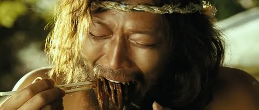 비둘기 똥에서 옥수수 씨앗을 길러내어 면을 만들어 먹는 과정.