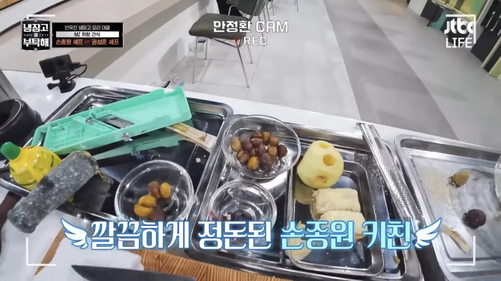 60회에서도 상대편 셰프가 바쁘게 움직이며 어수선 해질 때, 손 셰프 쪽은 깔끔하게 정돈되어 있는 장면이 송출되었다.
