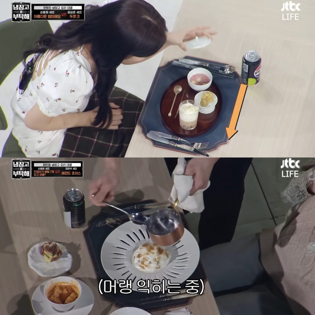이후 최민정이 디저트를 먹기 직전에는 직접 술에 불을 붙여 머랭을 익혀주는 퍼포먼스를 선보이기도 했다.