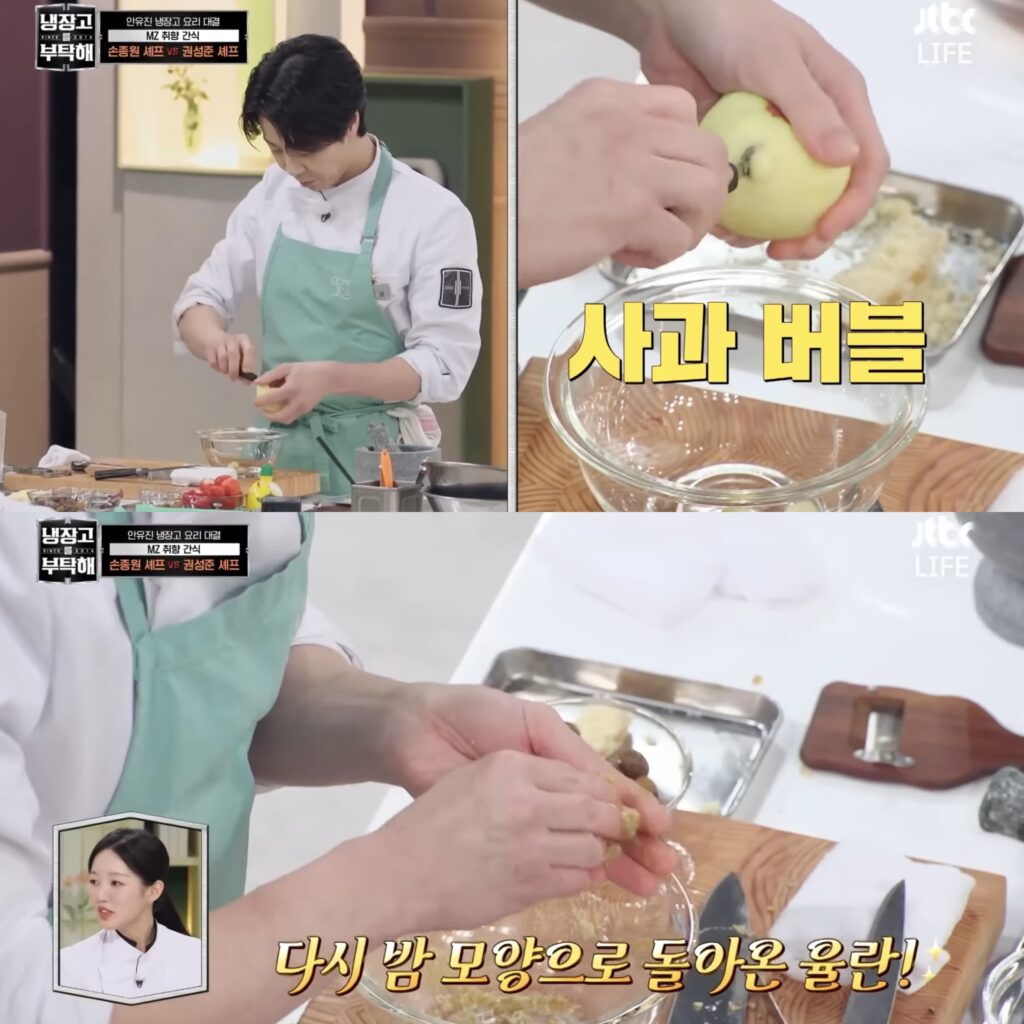 이후 함께 만든 ‘율란’도 마찬가지이다. 밤을 으깨 다른 재료와 섞어 다시 밤 모양으로 만드는 이 작업 또한 짧은 시간 안에 모양을 다듬는 섬세함이 한층 더 필요하다. 속도가 생명인 대결에서 손이 많이 가는 메뉴를 택하고 디테일을 챙긴 것이다. 이는 파인다이닝 셰프로서 요리의 아름다움을 끝까지 포기하지 않겠다는 그의 의지를 보여준다.
