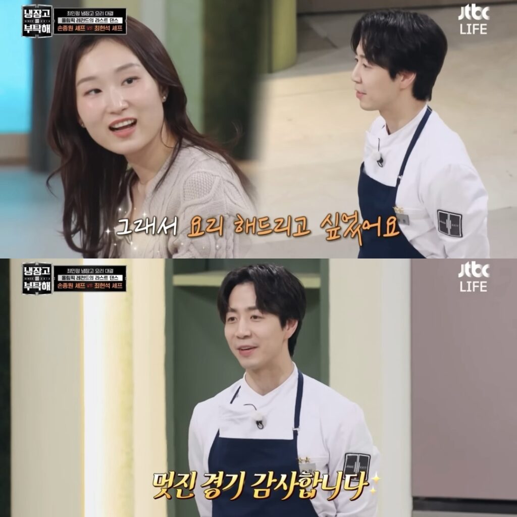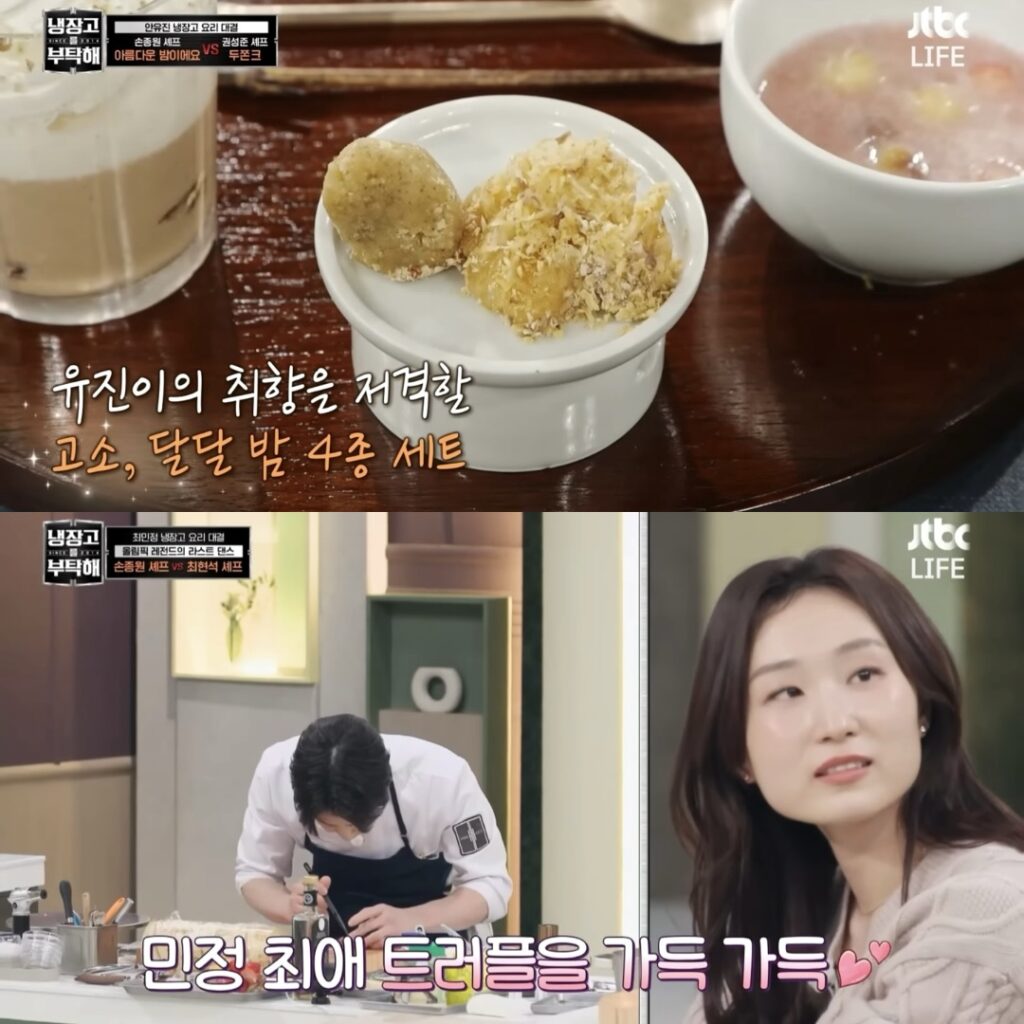 각각 3월 1일과 15일에 방영된 60회, 62회 방송분을 통해 그의 요리하는 모습을 들여다보자. 손 셰프는 60회에서 아이브 안유진을 위해, 62회에서는 쇼트트랙 선수 최민정을 위한 요리를 만들었다.