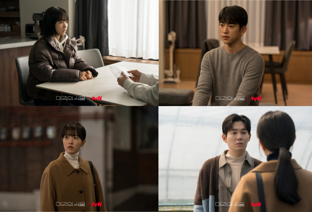 이렇듯, <미지의 서울>에 등장하는 인물들은 평범하고 완벽해 보이는 겉모습과는 다르게 마음 깊숙한 곳에 말 못 할 사정을 안고 살아갑니다. 그러나 이들은 얽히고 부딪히며 비로소 서로를 상처와 트라우마로부터 벗어나게 합니다. 그 과정에서 각자의 인물들은 어떻게 상처와 트라우마를 극복하는지 배우게 됩니다. 아픔을 딛고 또 다른 내일을 향해 나아가는 법을 서로를 통해 깨닫게 됩니다. 너무나도 한심하며 부끄러운 내가 아닌, 그러한 나도 사랑해 줄 수 있는 법을 알아가게 됩니다. ‘미지의 서울’이 끝에선 비로소 ‘나의 서울’이 된 것처럼, 한 치 앞도 알 수 없었던 삶 속 진정한 나를 발견하게 되는 것처럼 말이죠.