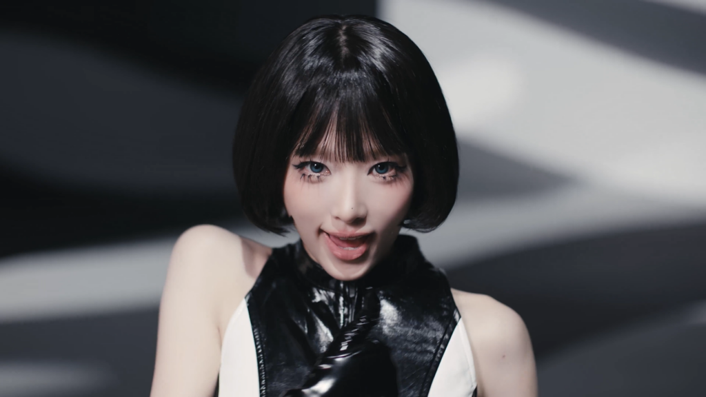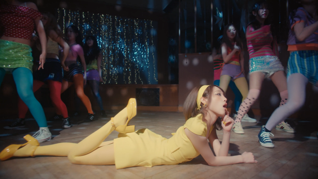 또한 돋보이는 건 레트로한 느낌이 나는 다채롭고 과감한 색깔이었다. 1940년이 생각나는 레트로한 스타일과 함께, 단순하지만 키치한 쨍한 단색 스타일링까지. 이러한 과감한 색깔들이 2세대 아이돌인 오렌지 캬라멜과 가인이 떠오르게 만든다. 또한 더 과거의 이정현이 <줄래>와 같은 음악에서 시도했던 레트로 요정 비주얼이 떠오르기도 한다. 엉뚱하고 앙큼한 스타일링, 과한 것 같아 보여도 이상하게 예나에게는 찰떡같이 어울린다.