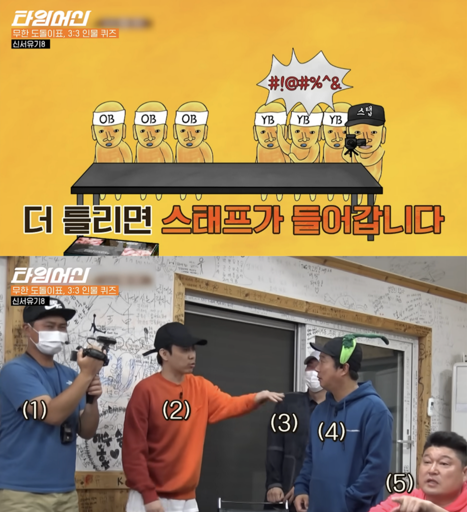 시즌 2의 ‘옥룡설산의 분노’ 미션에서 출연자들을 웃기기 위해 고군분투하던 스태프들이나, 시즌 8 인물 퀴즈에서 게임의 일원으로 투입되던 장면들이 대표적이다.