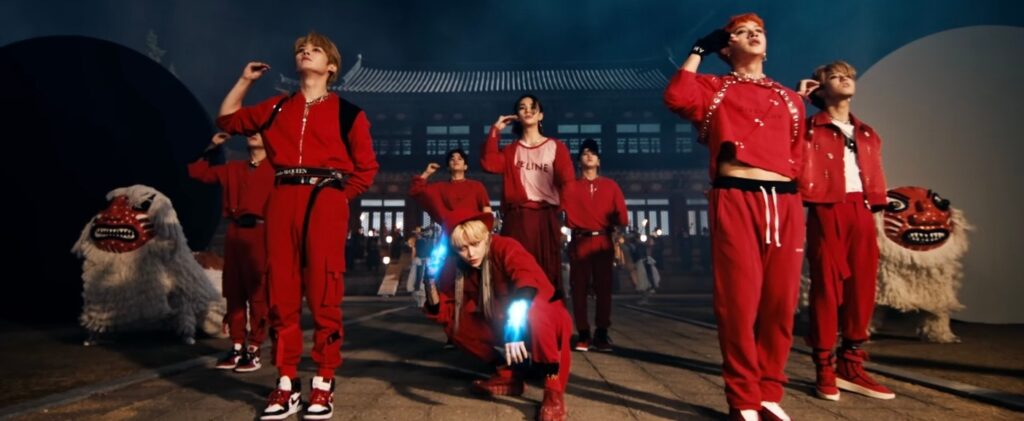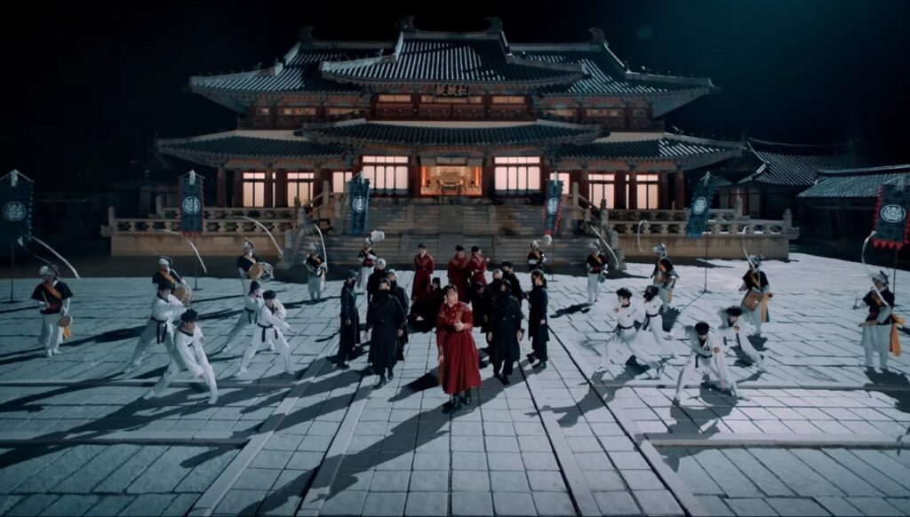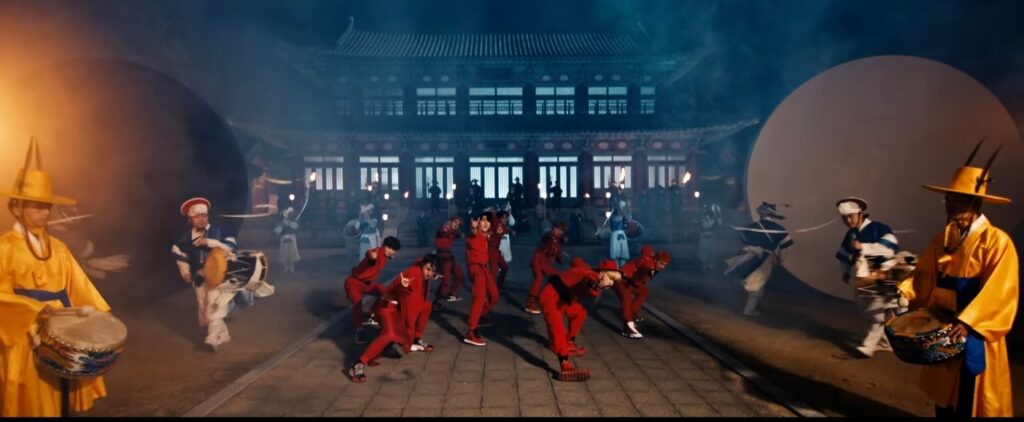 뮤직비디오에도 한복의 미가 드러나는 의상, 기와집, 상모놀이 등 한국의 전통적인 요소들이 곳곳에 드러나 있는데요, 이외에도 태권도 버전의 퍼포먼스 비디오가 공개되는 등 한국의 전통적인 요소들을 시청각적으로 아름답게 그려내고자 한 여러 시도들이 돋보입니다.