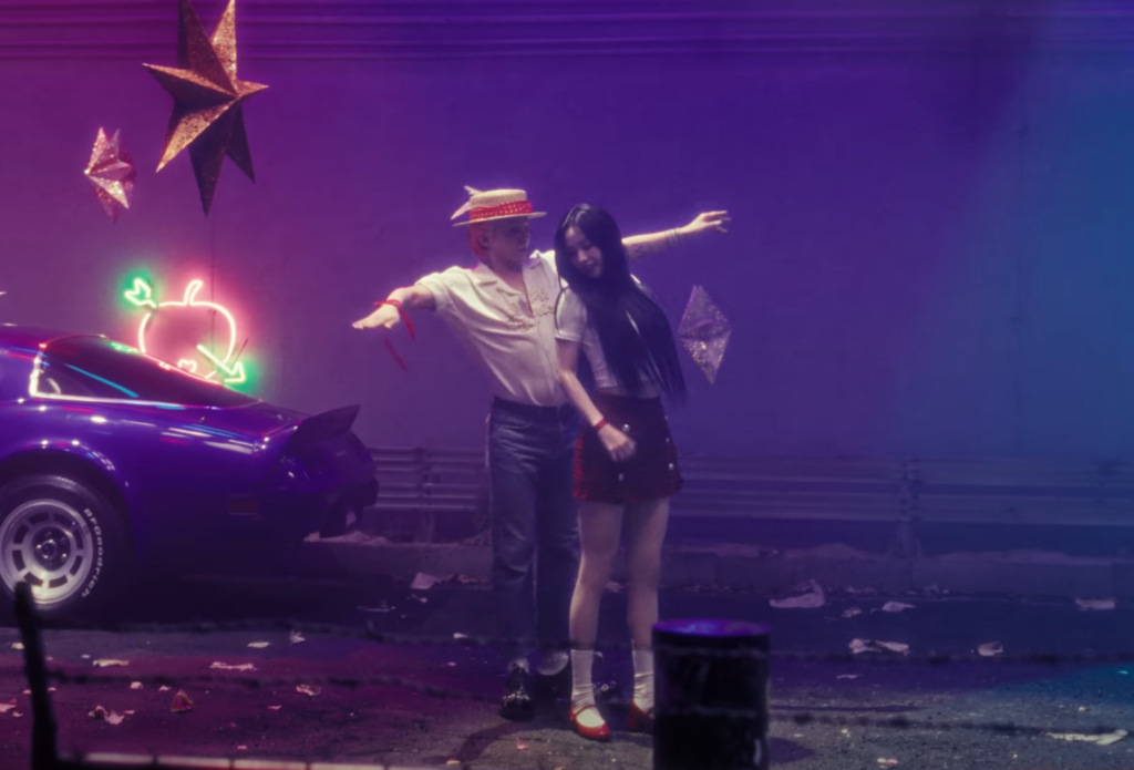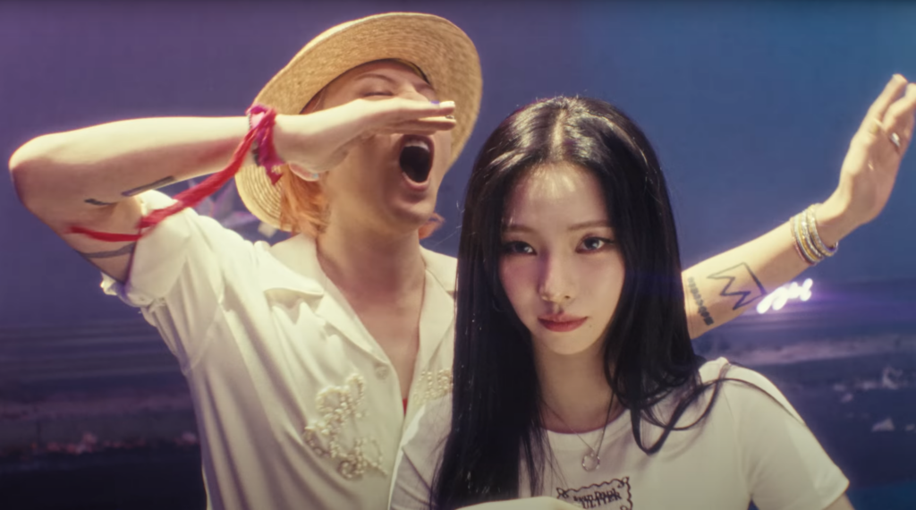 뮤직비디오는 강렬한 색감과 실험적인 연출이 돋보이며, 지드래곤만의 독창적인 아트 디렉션이 뚜렷하게 드러난다. 특히 이번 뮤직비디오에는 aespa의 카리나가 출연하여 화제를 모았다. 지드래곤이 오랜만에 신곡을 발표하며 예능, 유튜브 등을 통해 대중과의 접점을 넓혀가고 있는 가운데, 4세대 대표 아이돌인 카리나와의 협업은 그의 변함없는 영향력을 상징적으로 보여준다. 이는 지드래곤이 여전히 음악 시장에서 강력한 존재감을 유지하고 있으며, 후배 아티스트들과의 시너지를 통해 그만의 스타일을 확장해나가고 있음을 시사한다.