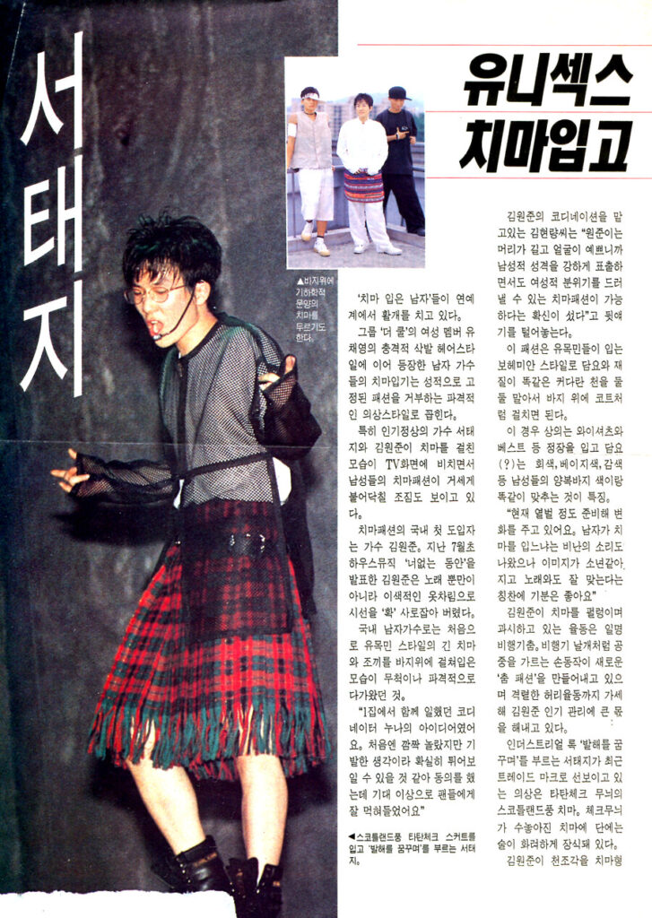 앨범 발매 후 첫 음악방송 무대에서는 형광빛이 감도는 파란색 염색 머리와 치마 스타일링이 단연 눈길을 끌었다. 강렬한 컬러감과 유니크한 패션은 누구나 쉽게 소화할 수 있는 것이 아니지만, 지드래곤은 이를 완벽하게 자신의 스타일로 흡수하며 다시 한번 패션 아이콘으로서의 면모를 증명했다. 특히 치마 스타일링은 과거 서태지와아이들의 ‘발해를 꿈꾸며’ 무대에서 서태지가 선보였던 패션을 연상시키며, 사회적 규범을 깨고 자유로운 개성을 표출하는 상징적인 의미를 담고 있다. 단순한 스타일링을 넘어 시대와 세대를 관통하는 메시지를 담고 있다는 점에서 더욱 인상적이다.