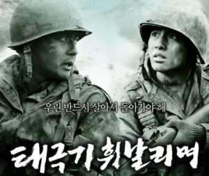 2004년 개봉한 강재규 감독의 <태극기 휘날리며>는 6.25전쟁을 배경으로 하여 전쟁터에서 보여주는 뜨거운 형제애에 관한 이야기이다. 1950년 6월, 주인공 진태(장동건)와 진석(원빈)은 넉넉한 형편은 아니지만 작은 집에서 가족들과 행복하게 살고 있었다. 그러던 어느 날, 느닷없이 일어난 전쟁은 그들의 행복하고 잔잔했던 일상을 처참히 무너트린다.