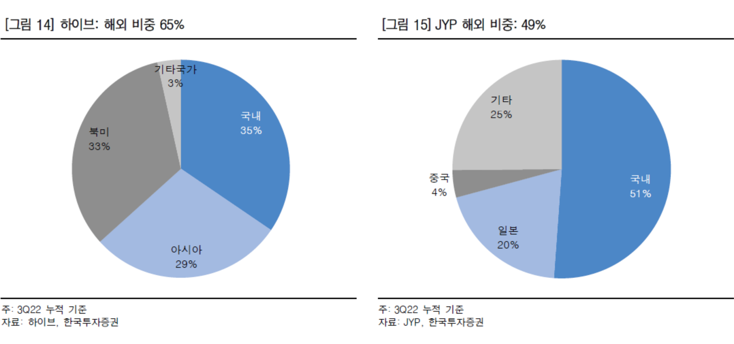 [출처: Moabbs. 2022. “음악시장규모/엔터사 해외 비중.” 2022년 12월 8일.]