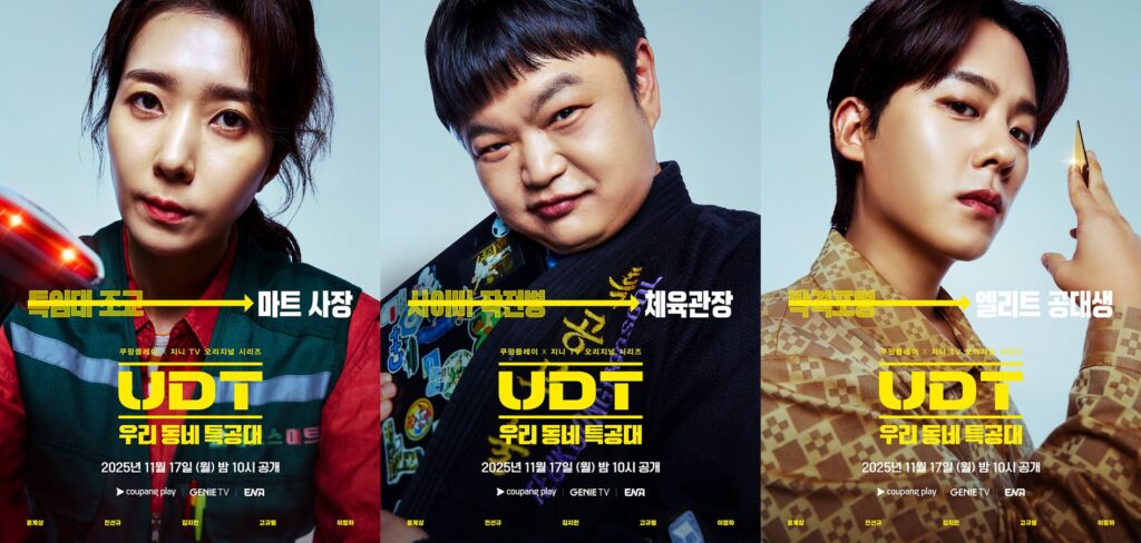 2025년 11월에 ENA와 쿠팡플레이에서 방영되고 있는 TV드라마 <UDT : 우리 동네 특공대>에서는 Party가 조금은 색다르게 구성됩니다. Party를 이루는 주인공들이 창리동이라는 지방 소도시의 동네에 모여 살며 각각 보험 조사관, 철물점과 문방구 주인, 마트 사장, 체육관 관장이라는 평범한 직업을 가졌다는 점입니다.
